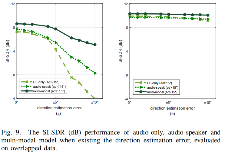 上图:单模态、双模态和多模态系统对目标语音方向估计误差的鲁棒性评测