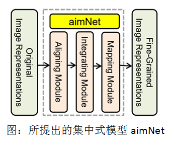 近日,邹月娴教授课题组的研究“Federated Learning for Vision-and-Language Grounding Problems”被在美国纽约举行的第34届人工智能发展协会(AAAI)人工智能会议(AAAI Conference on Artificial Intelligence, AAAI 2020)接收发表并以口头汇报(Oral)的形式进行了展示。该研究成果提出了一种联邦学习框架,可以从不同的任务中获得各种类型的图像表示,然后将它们融合在一起以形成细粒度的图像表示。这些图像表示融合了来自不同视觉和语言的多模态问题的有用图像表示,因此在单个任务中比单独的原始图像表示强大得多。为了学习这种图像表示,该课题组提出了对齐(Aligning),集成(Integrating)和映射(Mapping)网络(aimNet)。aimNet由一个对齐模块,一个集成模块和一个映射模块组成。如下图所示: