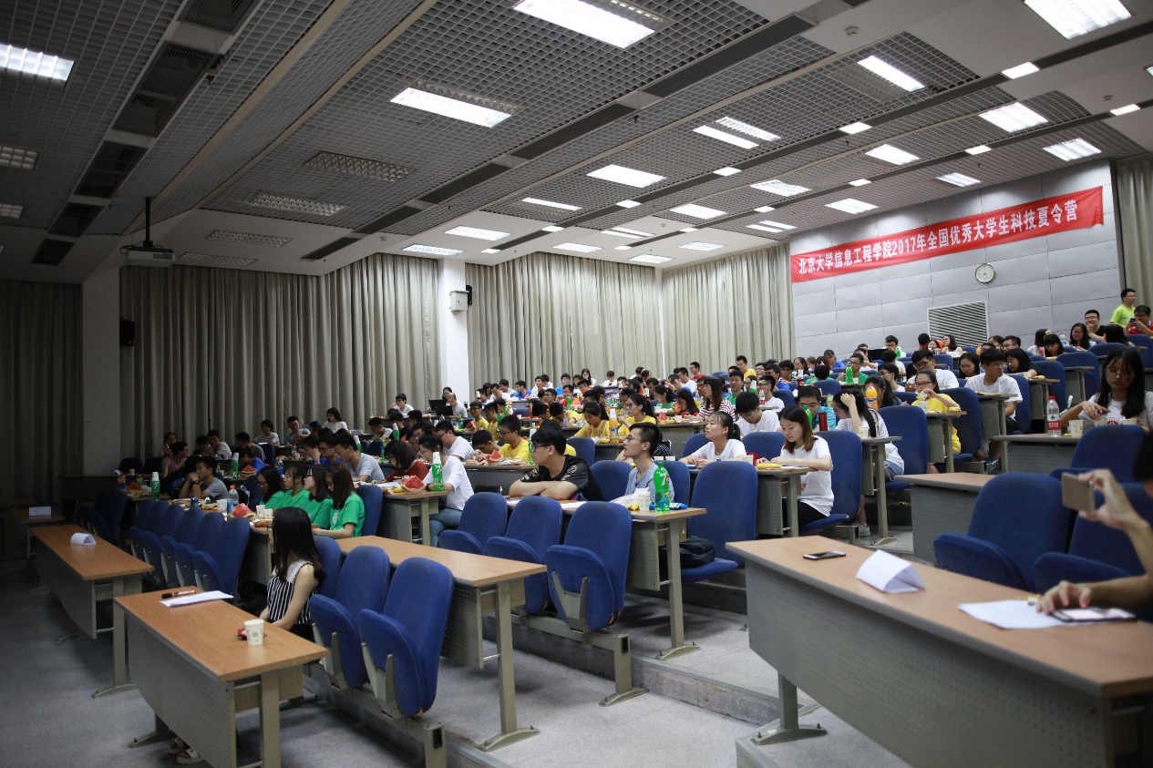 开营仪式结束后,营员们分专业在国法108和301教室听专业老师进行有关各课题组的详细介绍。
