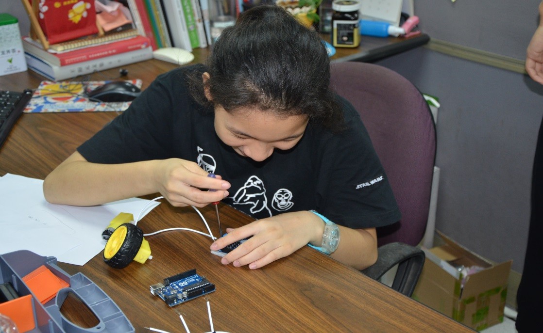 本次活动分为四个环节,第一个环节是进入奇妙的电子世界,让学员体验智能小车,并了解其中的电子元器件;第二个环节是成为小创客,让学员动手实践小车,并通过学习编码,让智能小车动起来;第三个环节是趣味比赛,学员可以根据自己的想法,自主实践小车,进行趣味比赛;第四环节是视野扩展,让学员发现更多的新奇创客项目,颁发结课证书。