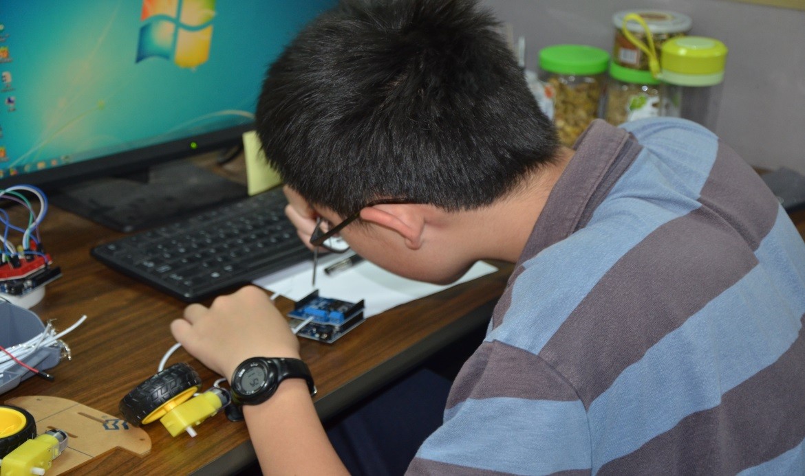 图七中的男孩子是刘慕凡,现在是辽宁省沈阳市东北育才中学高一的学生,慕凡的姑姑在深圳工作,特意给他报名来参加这次活动。慕凡妈妈表示,慕凡从来没有参加过类似的科普类动手的活动,他很感兴趣,每天上完课都舍不得回去,留下来跟小伙伴讨论怎么组装,怎么编程,整个活动下来,不仅锻炼了动手能力,还认识了一帮小伙伴,希望后续继续办类似的活动。