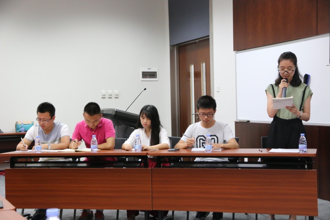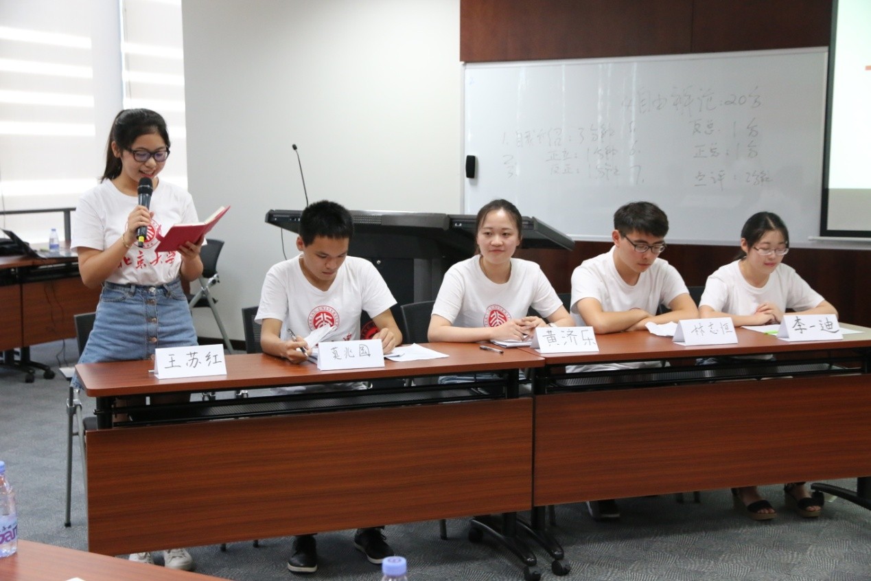 辩论过程中,首先由每个小组的正反双方供十位选手分别进行自我介绍,耗时不能超过三分钟,然后双方进行一分钟开篇立论,紧接着是二十分钟的自由辩论环节,最后双方各自总结陈词一分钟。整个辩论结束后,评委老师对辩题和辩论内容进行点评。辩论在现场工作人员的协助下,活动顺利举行。辩论过程中不仅有辩手们对观点的唇枪舌战、辩友之间的调皮打趣,还有评委老师幽默诙谐的总结点评,相信营员们都已经充分展示自己并且得到不少收获。