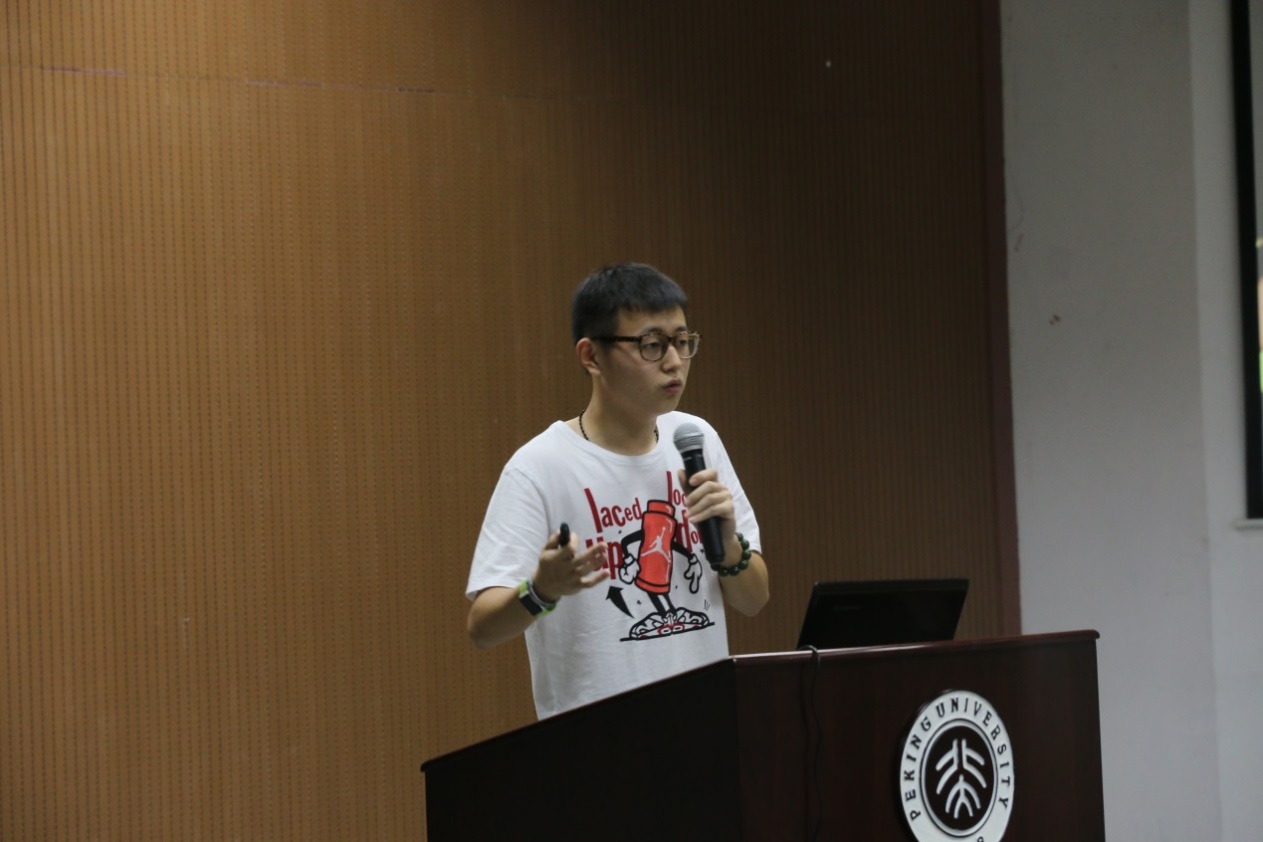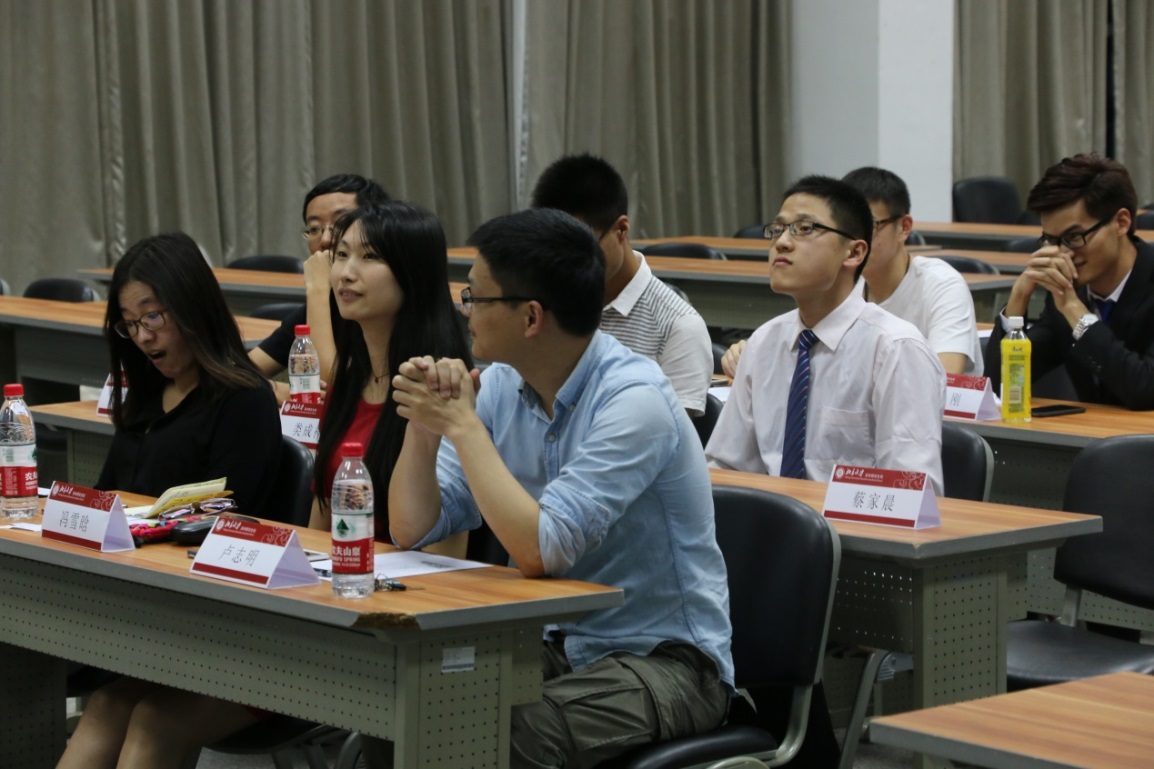 19点整,主持人李育原同学宣布比赛正式开始,热烈的掌声随即引爆全场。按照抽签顺序首先上场的是类成祥同学,他给我们带来的演讲是“唯能论”,简言之,就是一切都可以用能量来解释,这是一个与我们所接受的现有的理论完全不一样的观点,令在场所有听众耳目一新。然后,李辰同学用风趣幽默的语言带我们进入了一个别具一格的“水世界”。紧接着是石涧同学的“内在的探索”,告诉我们人生的历程对心灵的影响,以及对内心深处的探索。