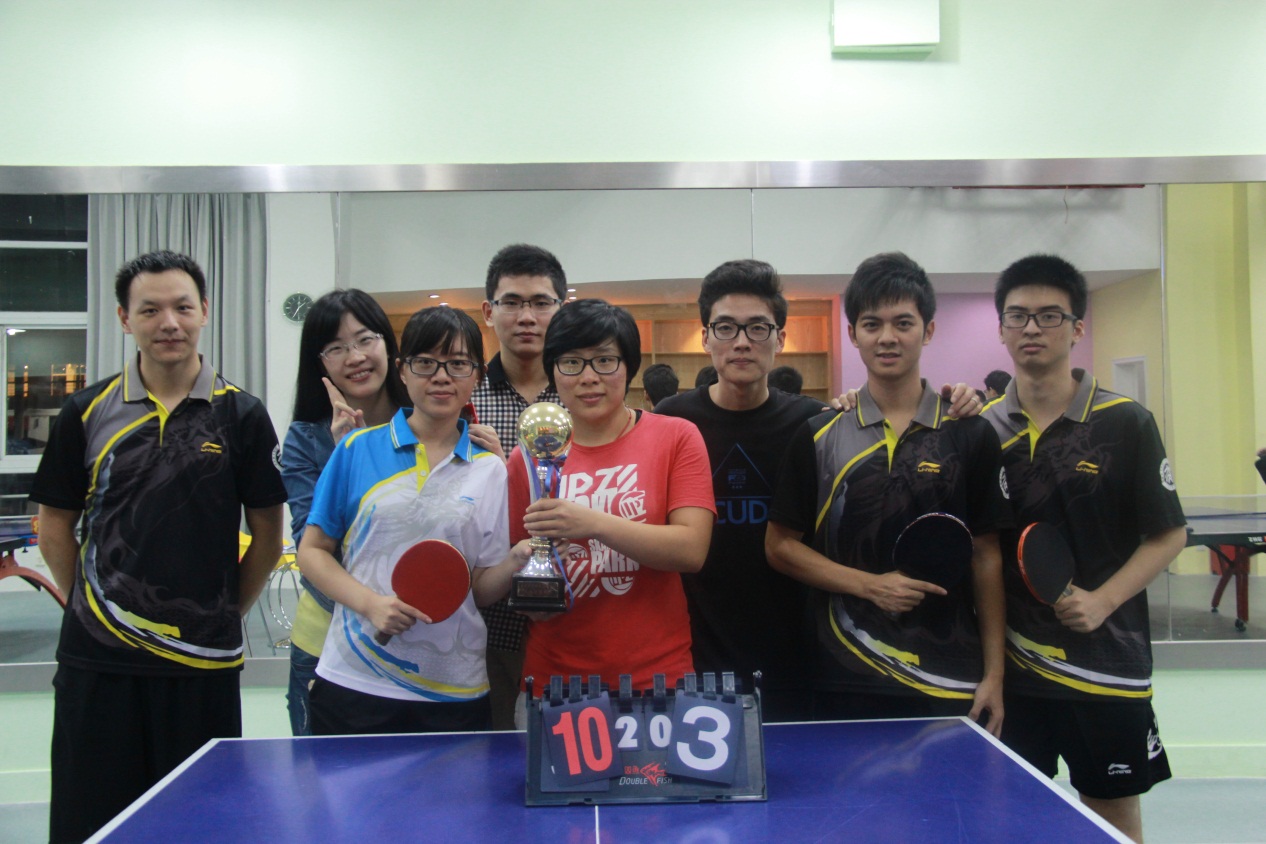 2015年11月1日晚,备受关注的“新生杯”乒乓球赛在同学们的喝彩声中落下帷幕。海角社区选手顽强拼搏、连克强敌,从八支代表队中脱颖而出,再一次荣获冠军!