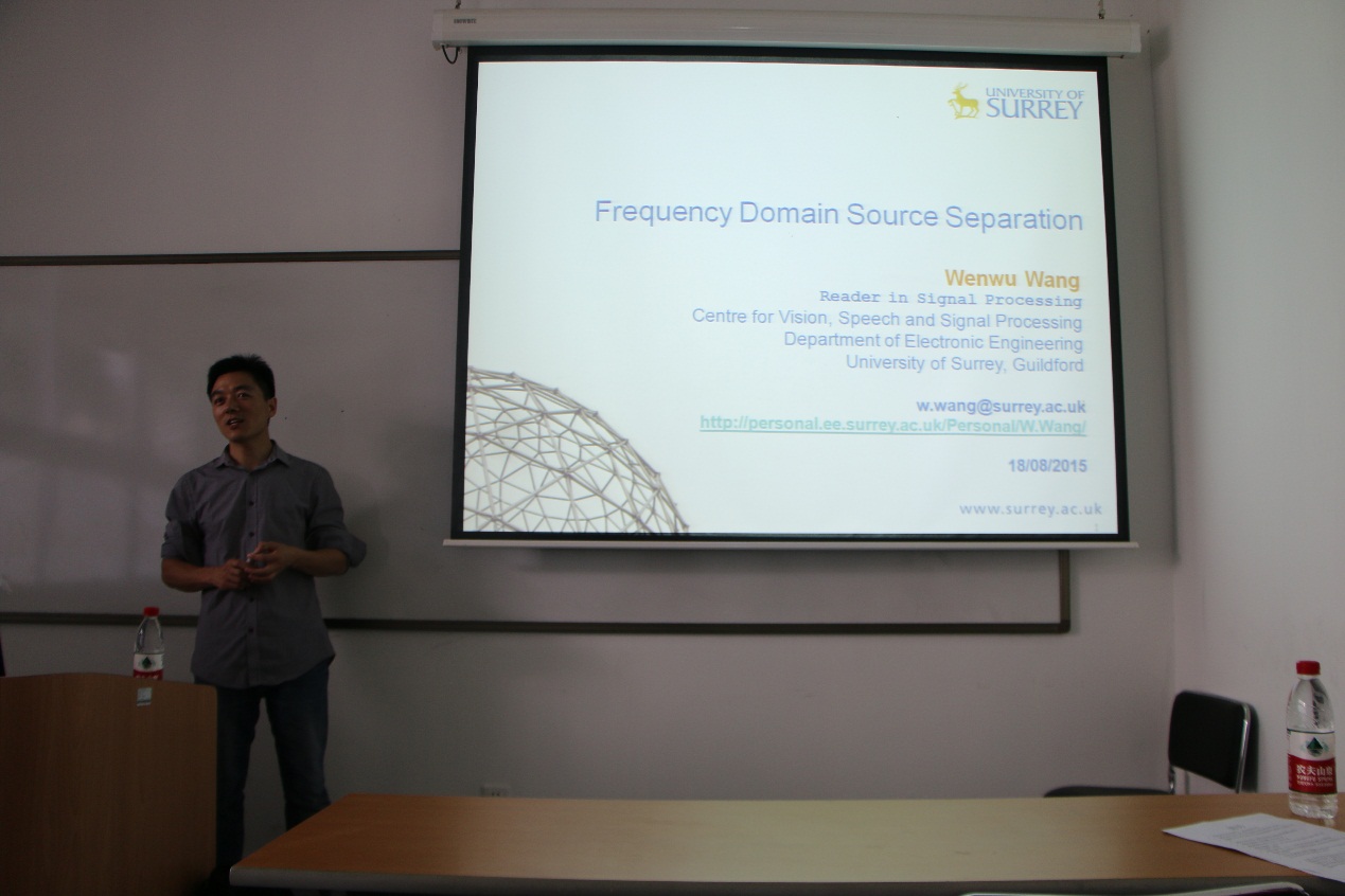 2015年8月18日上午,应邹月娴教授的邀请,来自英国萨利大学的王文武博士到海角社区进行学术交流,并在C栋106教室做了题为“Probabilistic Time-Frequency Masking for Convolutive Blind Source Separation”的学术讲座。