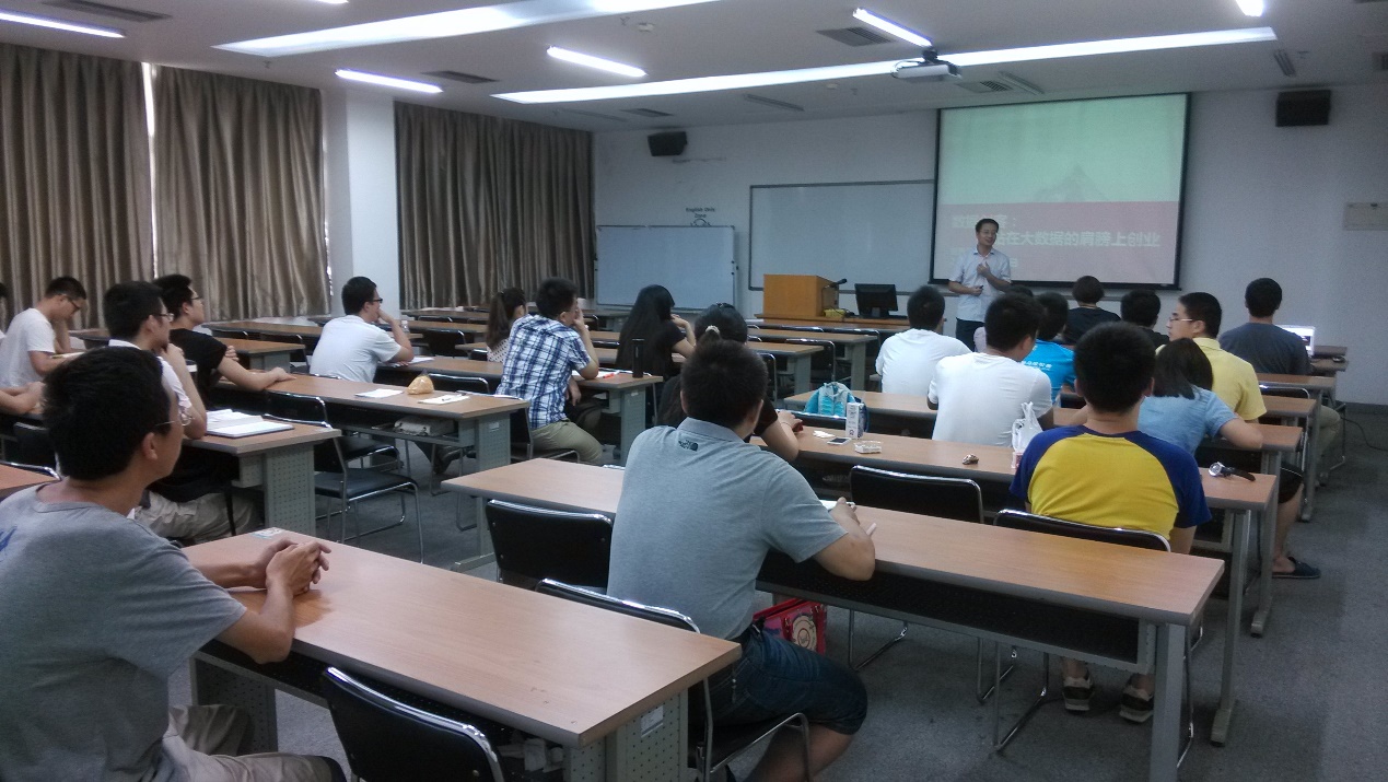 2015年5月29日,应海角社区邹月娴教授邀请,华傲数据技术有限公司CEO贾西贝博士到海角社区进行学术交流,并在C栋302教室做了题为“数据创客——站在大数据的肩膀上创业”的学术讲座。