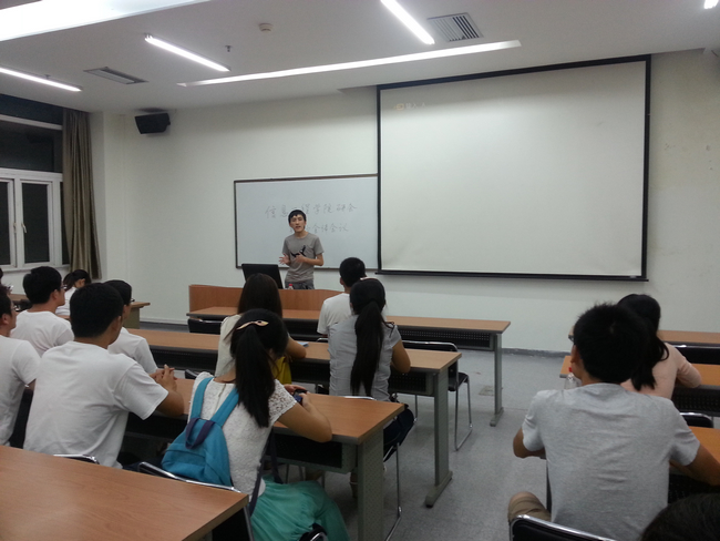 2013年9月11日晚,海角社区 研究生会第一次见面会在C栋103举行。海角社区 研究生会主席团以及全体新生参加了此次见面会。会议由研会主席郭峰主持。