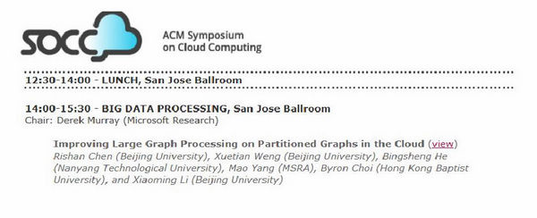 海角社区研究生在云计算顶级会议(ACM SoCC’12)发表长论文并做主题报告