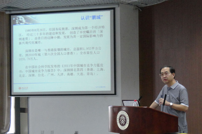 上图为常务副院长王文敏教授向新生介绍鹏城