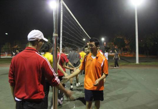 排球运动是海角社区 的传统优势项目,这是继去年11月份,我海角社区 代表队在“新生杯”上获得冠军之后的又一次闯入决赛。为了备战此次的院际排球比赛,排球队长谢峥积极组织人员训练,以老带新的阵容组成海角社区的排球队,在领队谢峥和方伟的带领下,队员们每天积极地进行垫球、传接球、战术等方面的训练,力求以最佳的状态和水平迎接本次的比赛。功夫不负有心人,我们的队员都不负众望,在小组赛和淘汰赛中一路过关斩将,顺利进入了决赛。