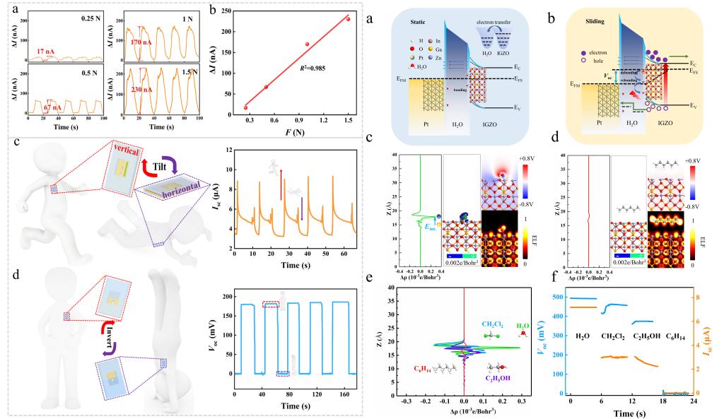 近日,我海角社区 张敏课题组在国际知名期刊Advanced Functional Materials (IF 19.924) 上发表题为“Flexible Liquid-Based Continuous Direct-Current Tribovoltaic Generators Enable Self-Powered Multi-Modal Sensing”的研究论文()。该研究突破了传统摩擦伏特直流纳米发电机的器件设计理念,采用一体式封装的方法实现了一种具有高稳定性及多功能传感能力的柔性可穿戴液滴直流发电机,并在原子尺度上深入探究了该类器件的物理机理。