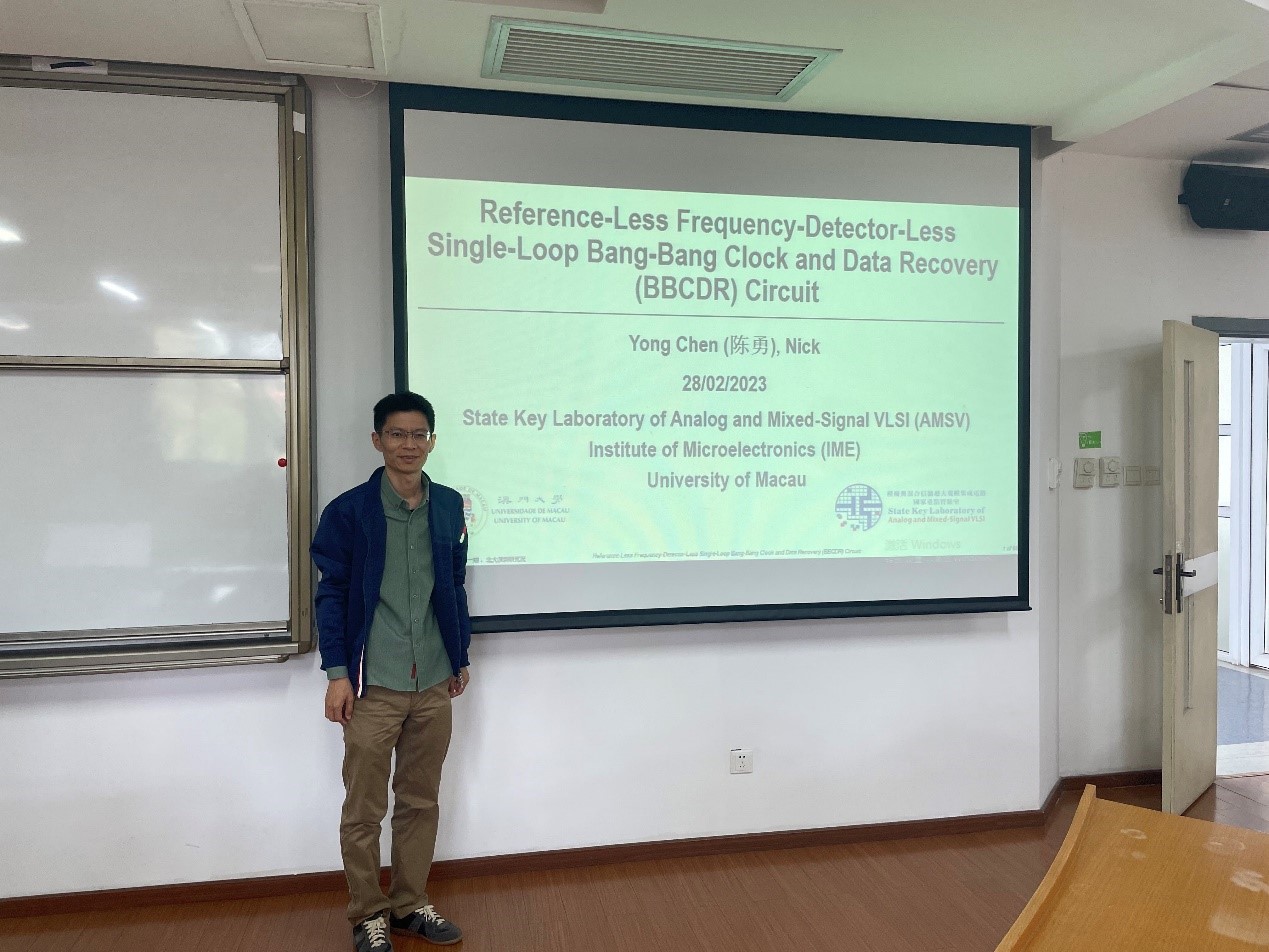 2月28日,海角社区邀请了澳门大学模拟与混合信号超大规模集成电路国家重点实验室的陈勇教授,分享了题为“Reference-Less Frequency-Detector-Less Single-Loop Bang-Bang Clock and Data Recovery (BBCDR) Circuit”的学术讲座。陈勇教授致力于集成电路领域的复合型和专业型领军和技术人才的培养,一直专注集成电路设计研究,涉及模拟/混合信号/射频/毫米波/有线通信等领域展开前沿的科学技术探索和研究。在芯片设计领域的主要国际期刊及国际会议发表学术论文近100 篇,授权中国专利18项。在本次讲座上,陈勇教授介绍了射频领域内的一些最前沿的关键技术,适用于未来高速无线通信和有线通信,并深入浅出地讨论他对于创新思维和人才培养的看法。
