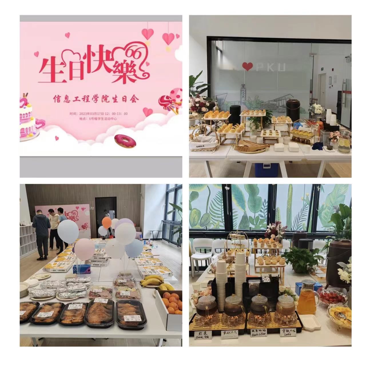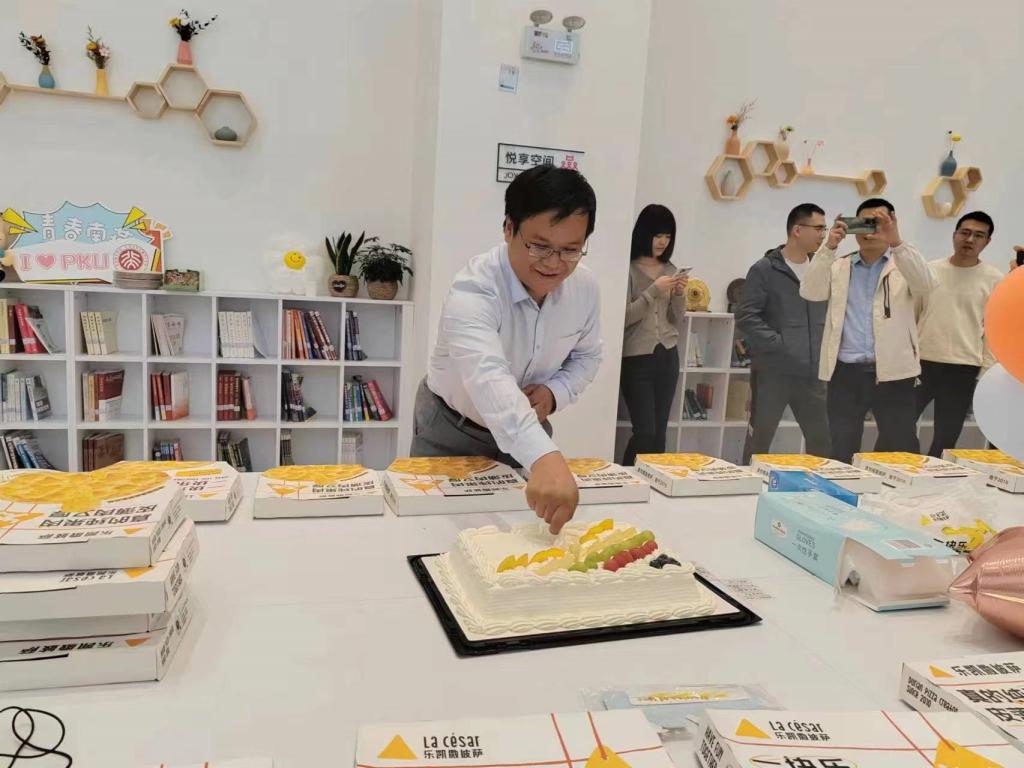 上午十二点许,生日会正式开始。会场内气球,海报和装饰精美放置,披萨,水果、点心等各种美食和小吃整整齐齐摆放在桌面上,气氛温馨愉悦。在会上,李倩副院长向教职工发表了简短的致辞,表达了海角社区 对他们的感谢和认可,以及对未来的期望。随后田永鸿院长切生日蛋糕,“蛋糕上头,鸿运当头”为教职工送上生日祝福。教职工在会上尽情享受着美味的生日餐、互道祝贺。