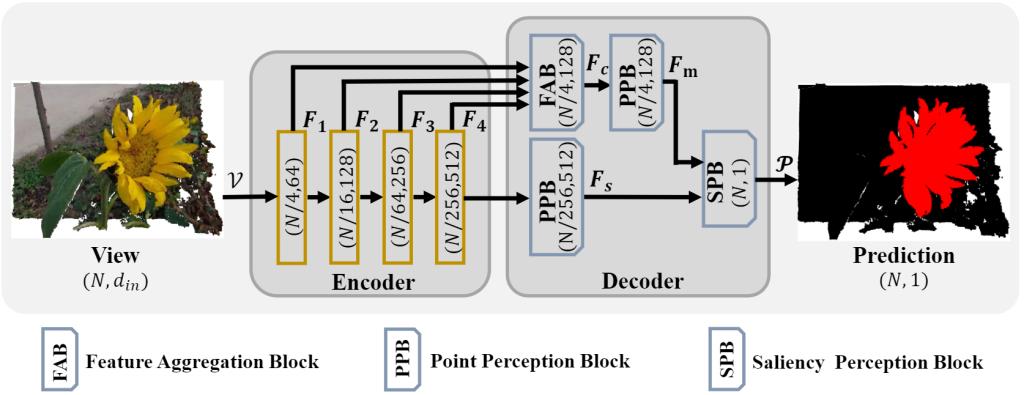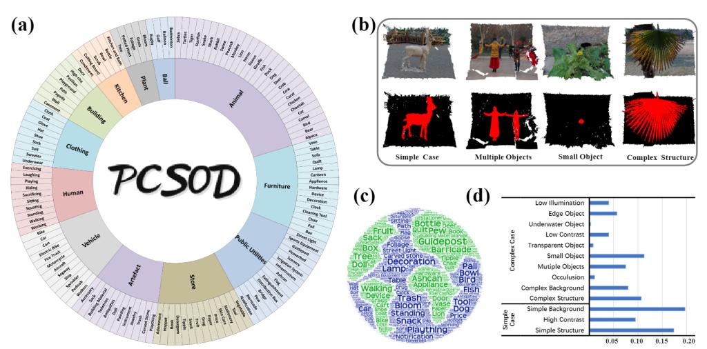 论文1:“Salient Object Detection for Point Clouds”聚焦于点云显著性目标检测这个尚未被探究的问题。与面向图像的显著性目标检测不同,我们发现点云场景下的注意力转移可能会引发显著性冲突。所谓显著性冲突就是指一个物体自相矛盾地同时属于显著的类别和非显著的类别。为了避免这个问题,我们提出了一种新颖的基于视角的显著性物体的定义,它能够合理地反映点云场景中最吸引人注目的物体。根据所提出的定义,我们制作了第一个包含2872个室内外3D视点的面向点云显著性目标检测任务的数据集,并且命名为PCSOD。我们数据集中的样本带有层次化的标签,例如:超类/子类、边界框和分割图。这些标签使得我们的数据集具有很好的验证各种猜想的泛化性和实用性。为了证明我们的方案的可行性,我们进一步贡献了一个基线模型,并对五个有代表性模型进行基准测试以进行全面比较。所提出的模型可以有效地分析不规则且无序的点云以检测显著性目标。得益于针对特定任务的特殊设计,我们的方法取得了明显好于其他基线模型的结果。大量的实验和讨论揭示了这一研究方向具有巨大潜力,为进一步的研究铺平了道路。项目开源地址:。