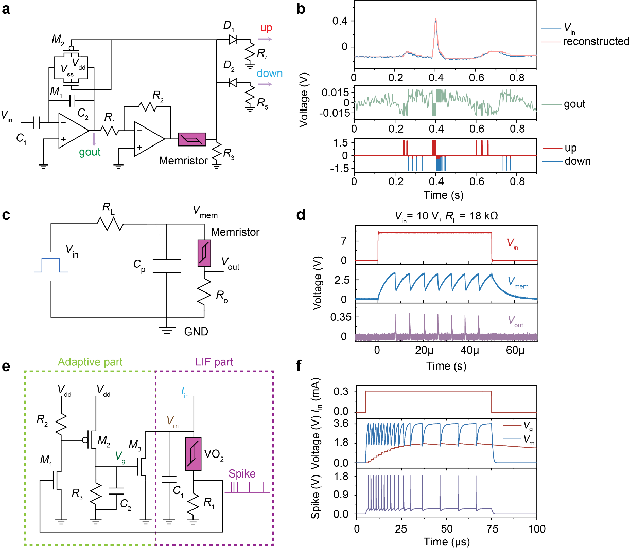 图2:基于VO2忆阻器的异步脉冲编码器和神经元