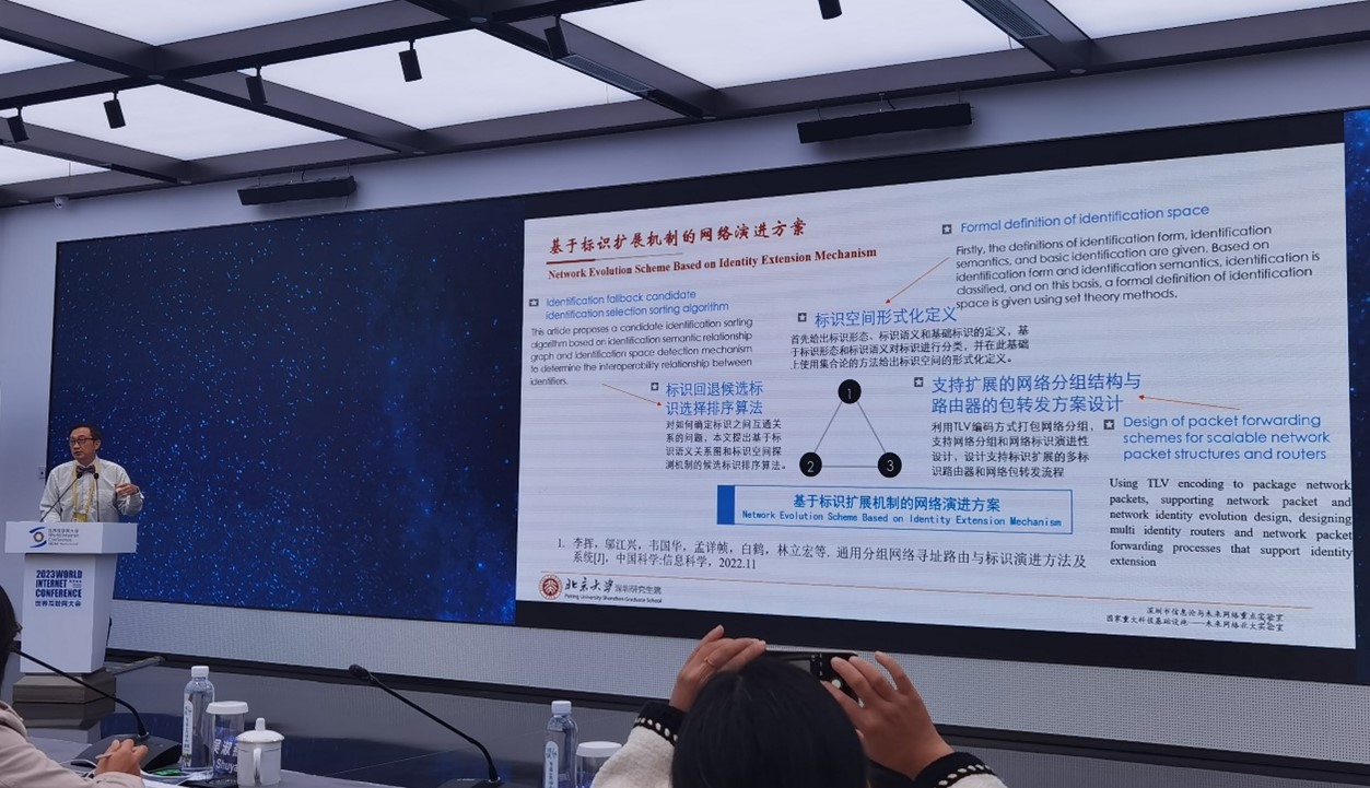 最后,李挥教授介绍了其团队网络演进方面的工作:基于标识扩展机制的网络演进方案。从标识回退候选标识选择排序算法、标识空间形式化定义、支持扩展的网络分组结构与路由器的包转发方案三个方面,组建网络演进方案,保障MIN前向可兼容、后向可迭代。