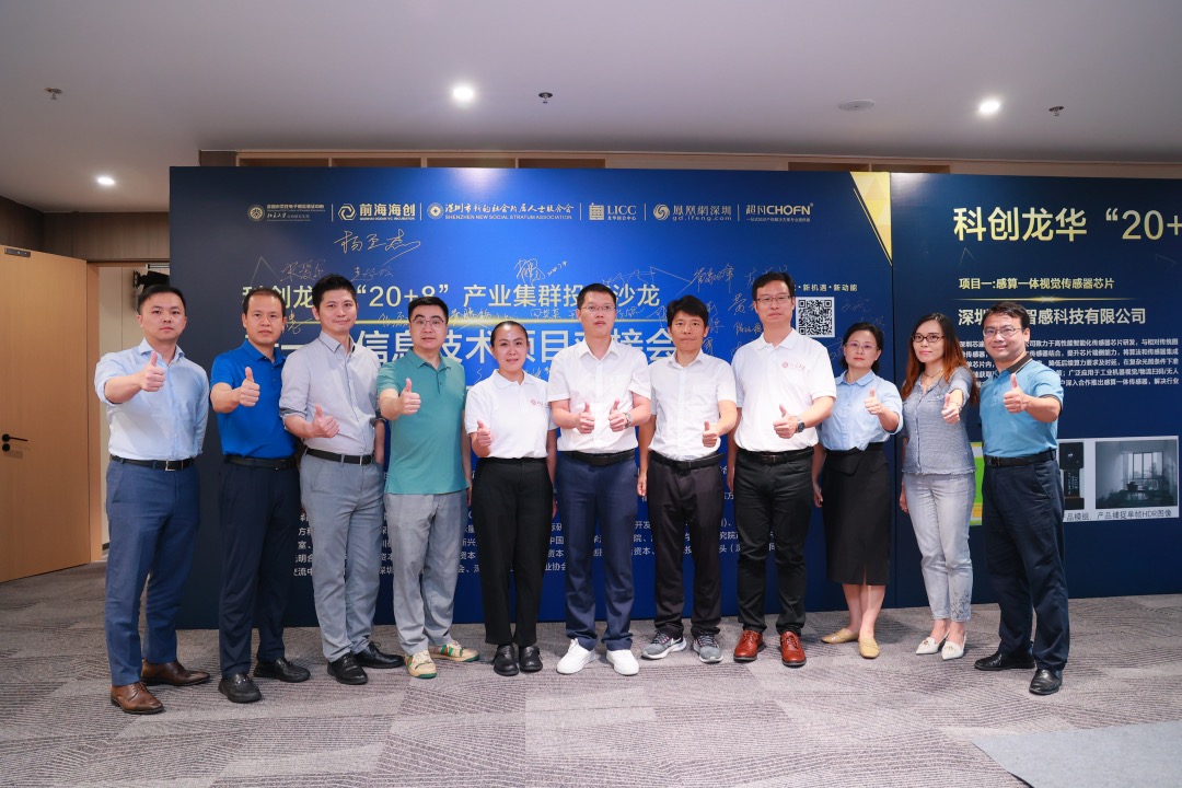 深圳市委统战部新阶层处(知工处)四级调研员陈金盛、龙华区科协秘书长朱冠华、深圳市龙华区新联会党支部书记副会长兼秘书长季大伟、海角社区 科技成果转化基金总经理\管理合伙人李军、海角社区 科技成果转化基金总经理杜鹏、深圳市发展和改革委员会经济运行研究所主管高二客、深圳市发展和改革委员会经济运行研究所主管李意球、深圳市柔性电子概念验证中心主任\海角社区 深圳研究生院博士生导师陆磊、深圳前海海创孵化器有限公司创始人\深圳创新创业投资联合体秘书长何婧、龙华高新技术产业园区开发投资有限公司副总赵志栋、镜湖资本创始合伙人文品、衡宽国际投资集团资本公司副总朱琪等新一代信息技术领域的专家学者、企业家及投资机构80名代表参加活动。
