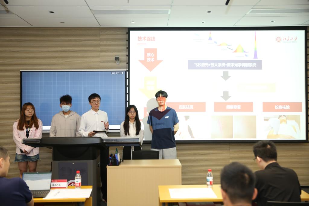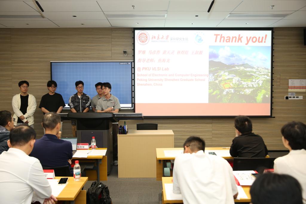 在紧张而激烈的项目展示环节,参赛学生分别展示了他们丰富的创业项目,涵盖芯片设计、信息通信和系统研究等多个领域。房久凯、郑子彤、单文浩、杨忆安、裴俊、谢妍的参赛项目《基于AI加速器芯片的具身智能》旨在通过“算法-硬件-场景”全栈式协同创新,解决传统计算架构在能效比、实时性与环境交互能力上的瓶颈问题,在算法、架构和系统层面推动AI加速器与具身智能算法的融合应用。黄垲焱、盛炜杰、高泽斌、金红、彭思维、祁林安娜的参赛项目《面向低损伤祛斑的飞秒激光器设计与优化》利用飞秒激光高精度低损伤等优点,研发出可以在精准祛斑的效果同时减少对皮肤的热损伤的飞秒激光器。罗维、马彦哲、黄天灵、王叙源、林煜炫的参赛项目《基于3DGS算法的三维重建加速器研究》致力于开发一套基于软硬件协同优化的实时三维视频处理系统,通过深度融合3DGS(三维高斯泼溅)算法的最新研究成果与创新的硬件架构设计,实现高质量动态三维视频的实时解码与渲染。