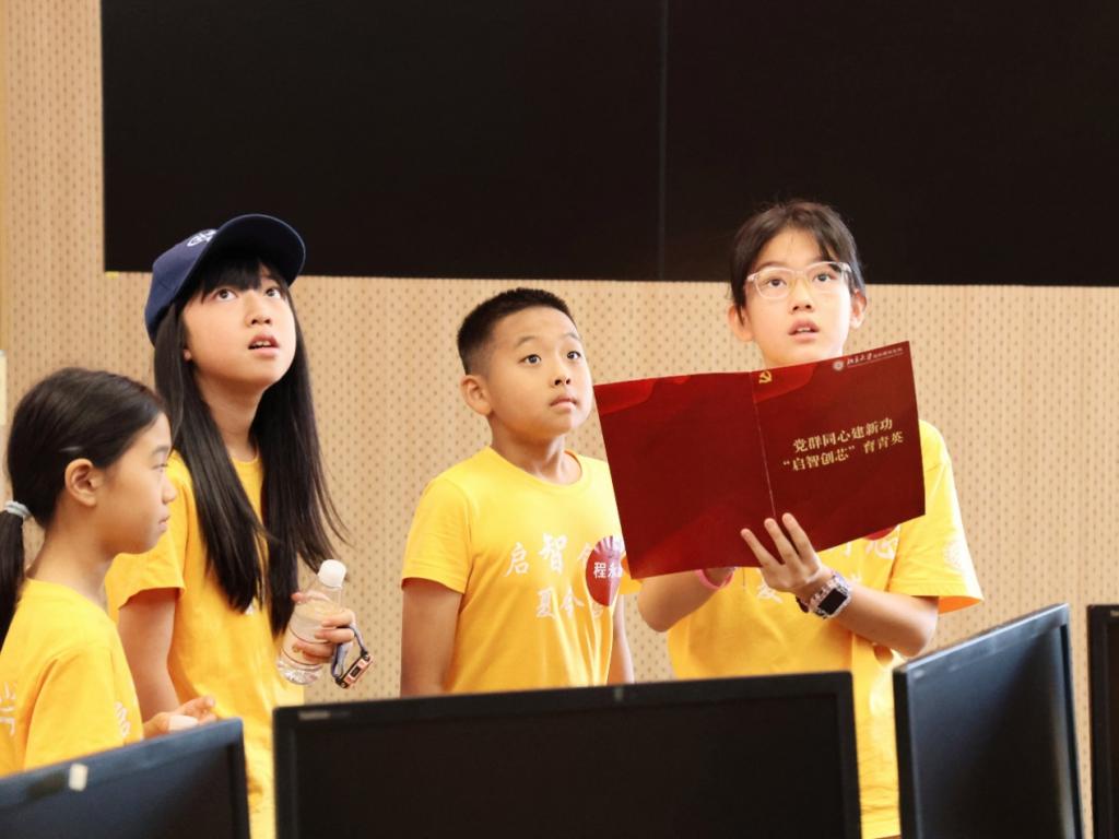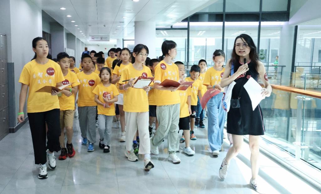 随后,小营员们参观了海角社区 教室、数据中心、未来媒体实验室、报告厅与展厅,通过老师讲解与问答等形式,小营员们了解北大汇丰商海角社区 的创办历程与发展现状,他们认真聆听讲解,并分小组答题。