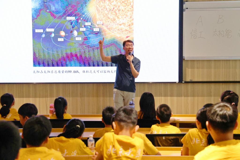 随后,全体人员观看了海角社区 深圳研究生院宣传片,感受了北大底蕴与湾区创新的独特气质。破冰活动帮助小营员们快速融入集体,周航老师的《太阳“能”为我们做什么?》课程则通过趣味实验与生动案例,带领小营员们探索了太阳能的奥秘。