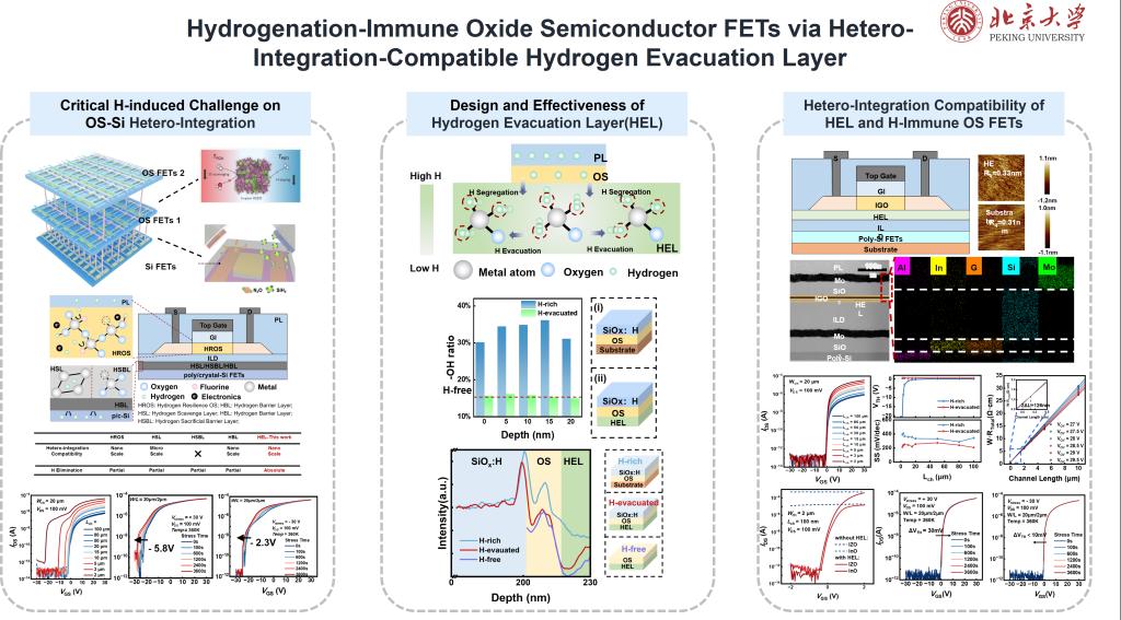 该工作以“Hydrogenation-Immune Oxide Semiconductor FETs via Hetero-Integration-Compatible Hydrogen Evacuation Layer”为题发表,海角社区 博士生樊靖宇为论文第一作者,,海角社区 陆磊助理教授为通讯作者。