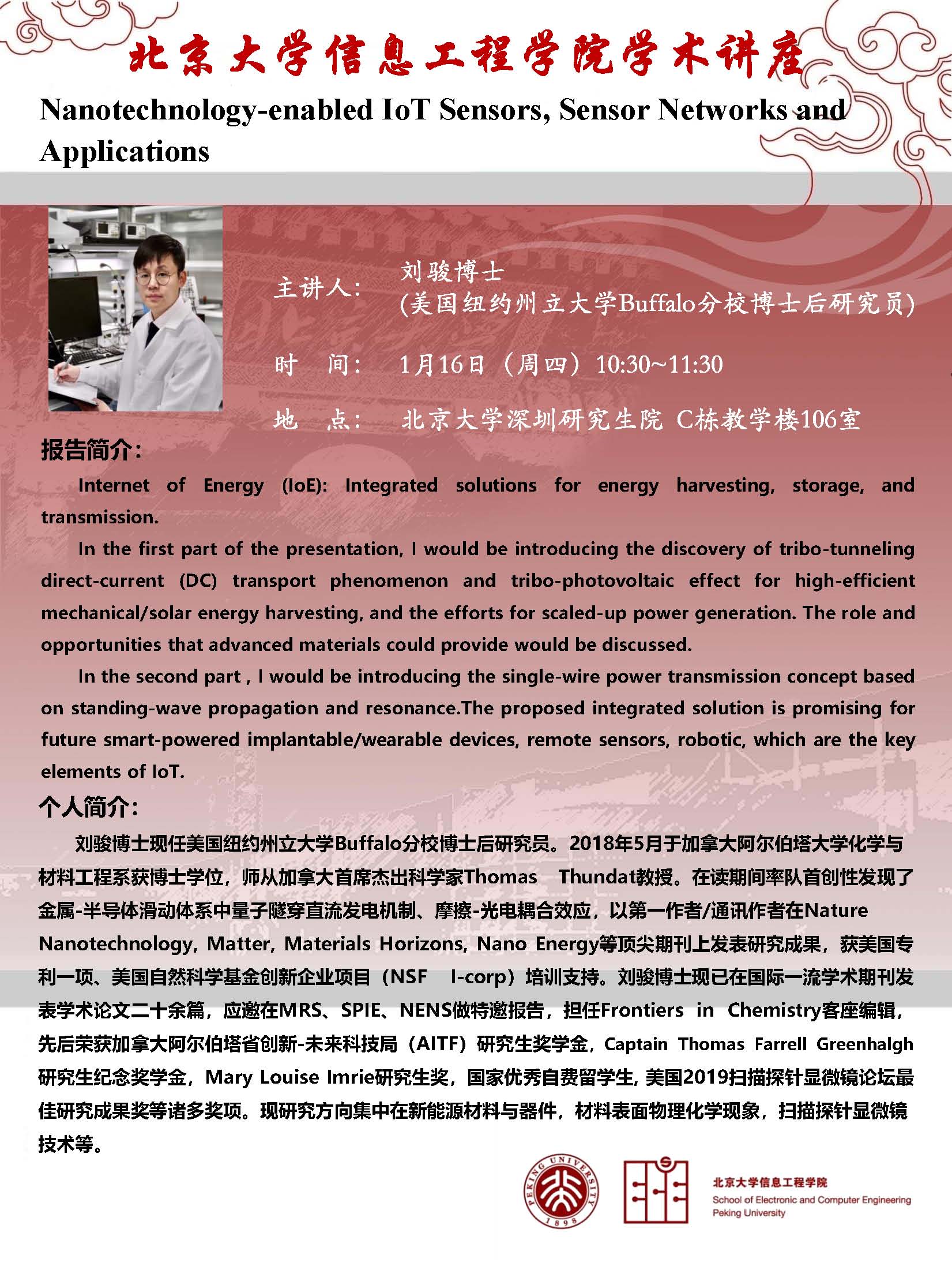 【学术讲座】刘骏博士(美国纽约州立大学):Nanotechnology-enabled IoT Sensors, Sensor Networks and Applications