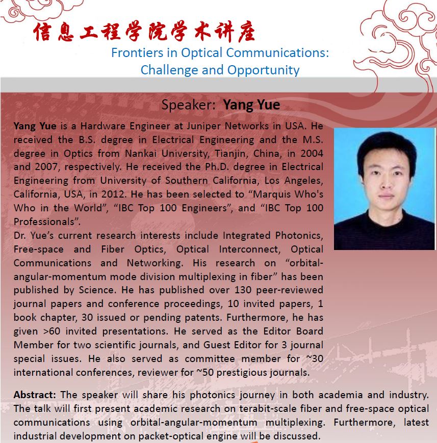 【学术讲座】Yang Yue 博士:Frontiers in Optical Communications: Challenge and Opportunity