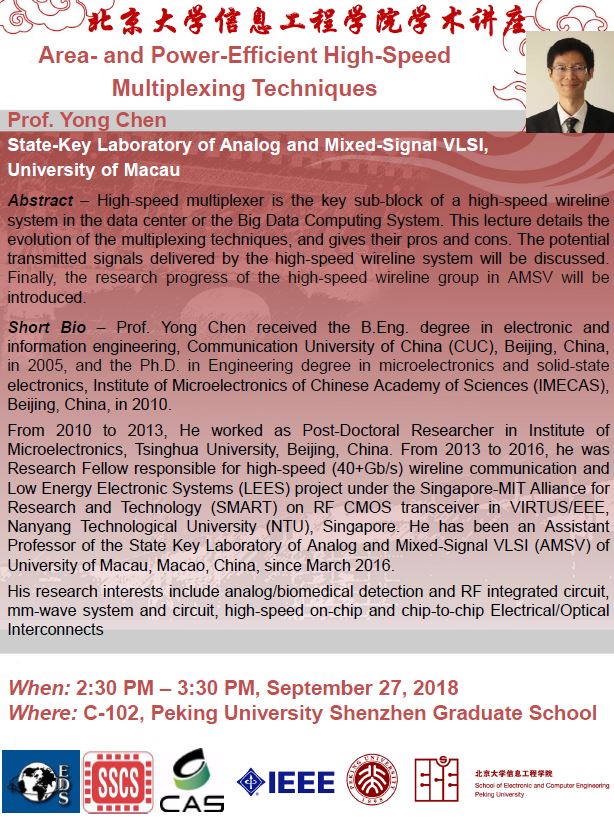 【学术讲座】陈勇(澳门大学)"Area- and Power-Efficient High-Speed Multiplexing Techniques"
