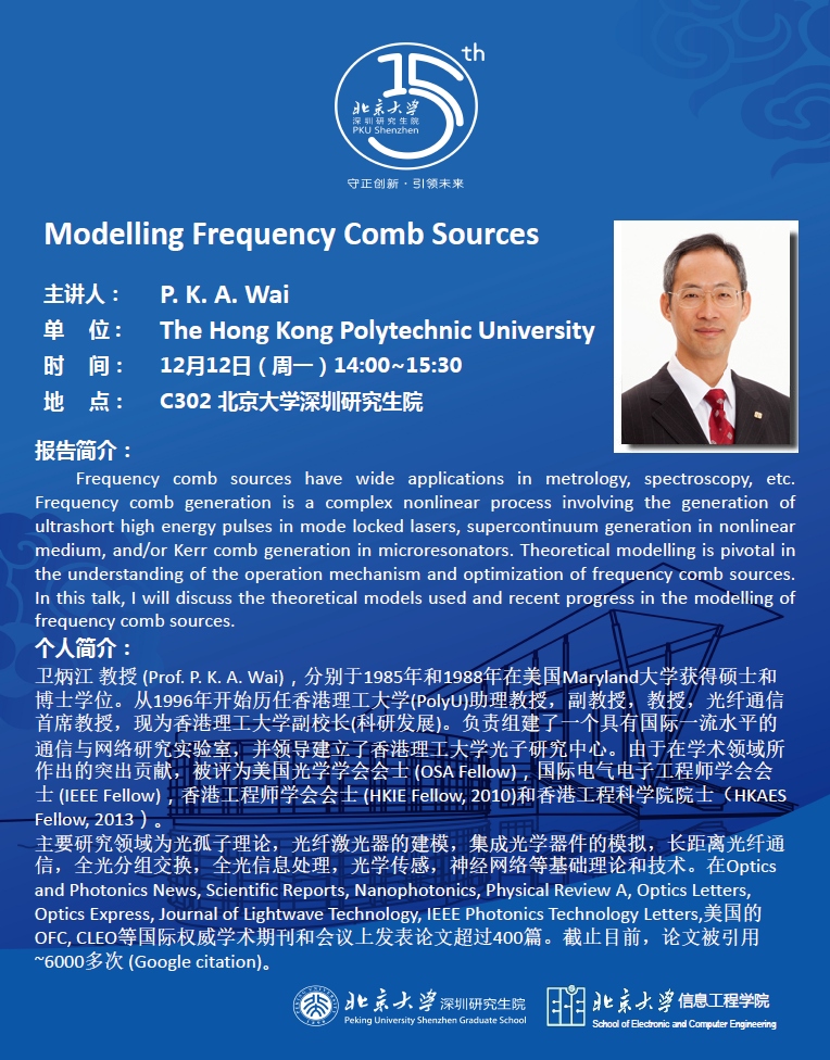【学术讲座】卫炳江教授(香港理工大学副校长):Modelling Frequency Comb Sources