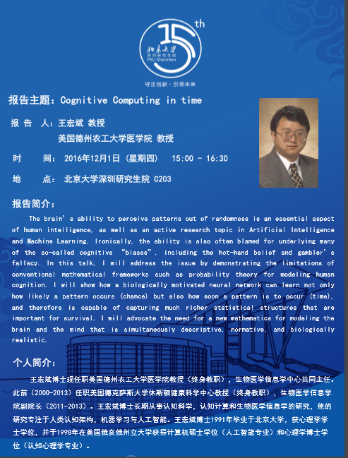 【学术讲座】王宏斌 美国德州农工大学医海角社区 教授:Cognitive Computing in time