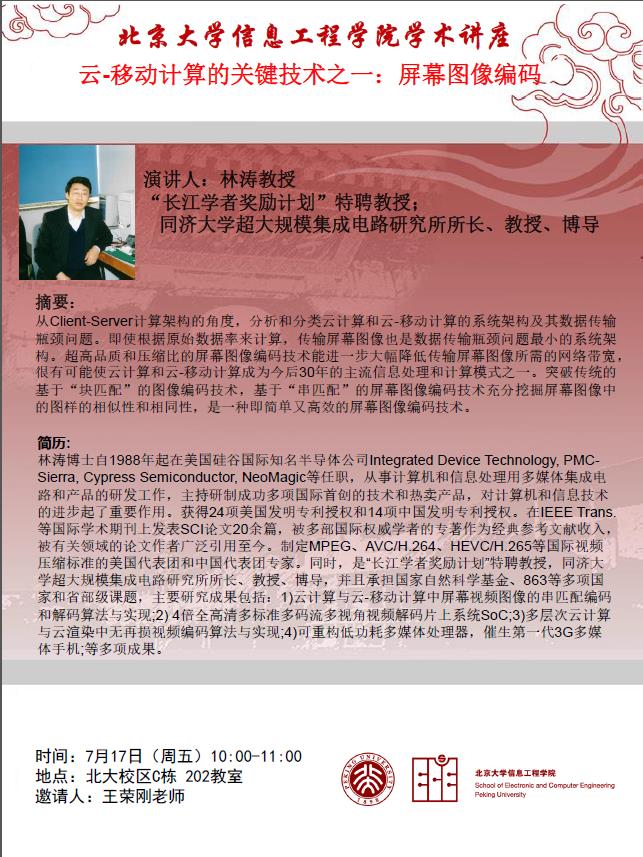 【学术讲座】林涛教授(长江学者):云-移动计算的关键技术之一:屏幕图像编码