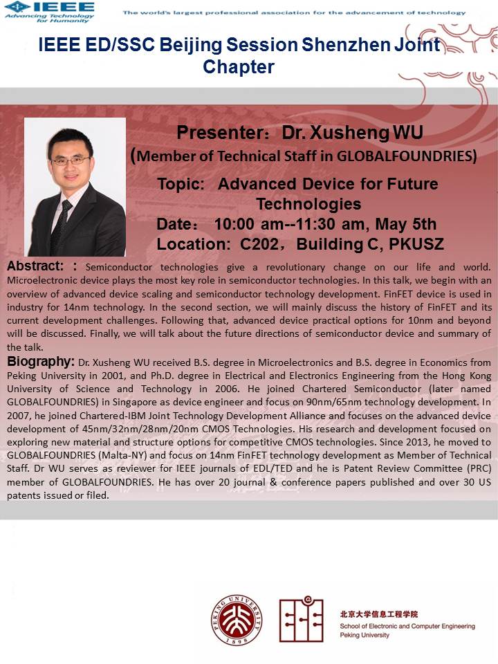 【学术讲座】吴旭升博士 (新加坡GlobalFoundries):Advanced Device for Future Technologies