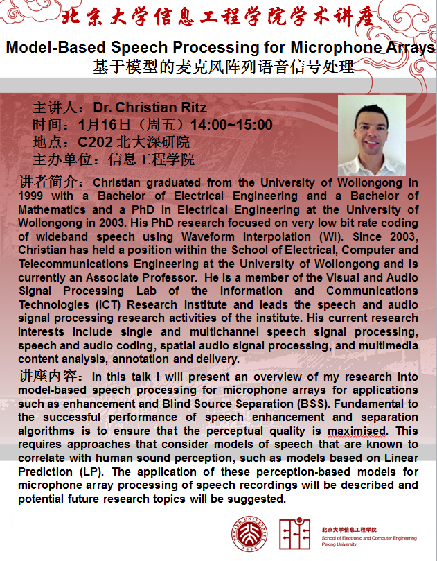 【学术讲座】Dr.Christian Ritz:Model-Based Speech Processing for Microphone Arrays