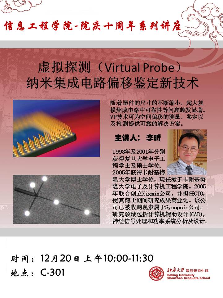 【海角社区 院庆十周年系列讲座】李昕 博士:虚拟探测(Virtual Probe)纳米集成电路偏移鉴定新技术