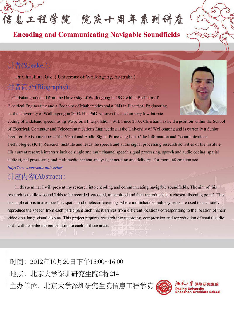 【海角社区 院庆十周年系列讲座】Dr.Christian Ritz: Encoding and Communicating Navigable Soundfields