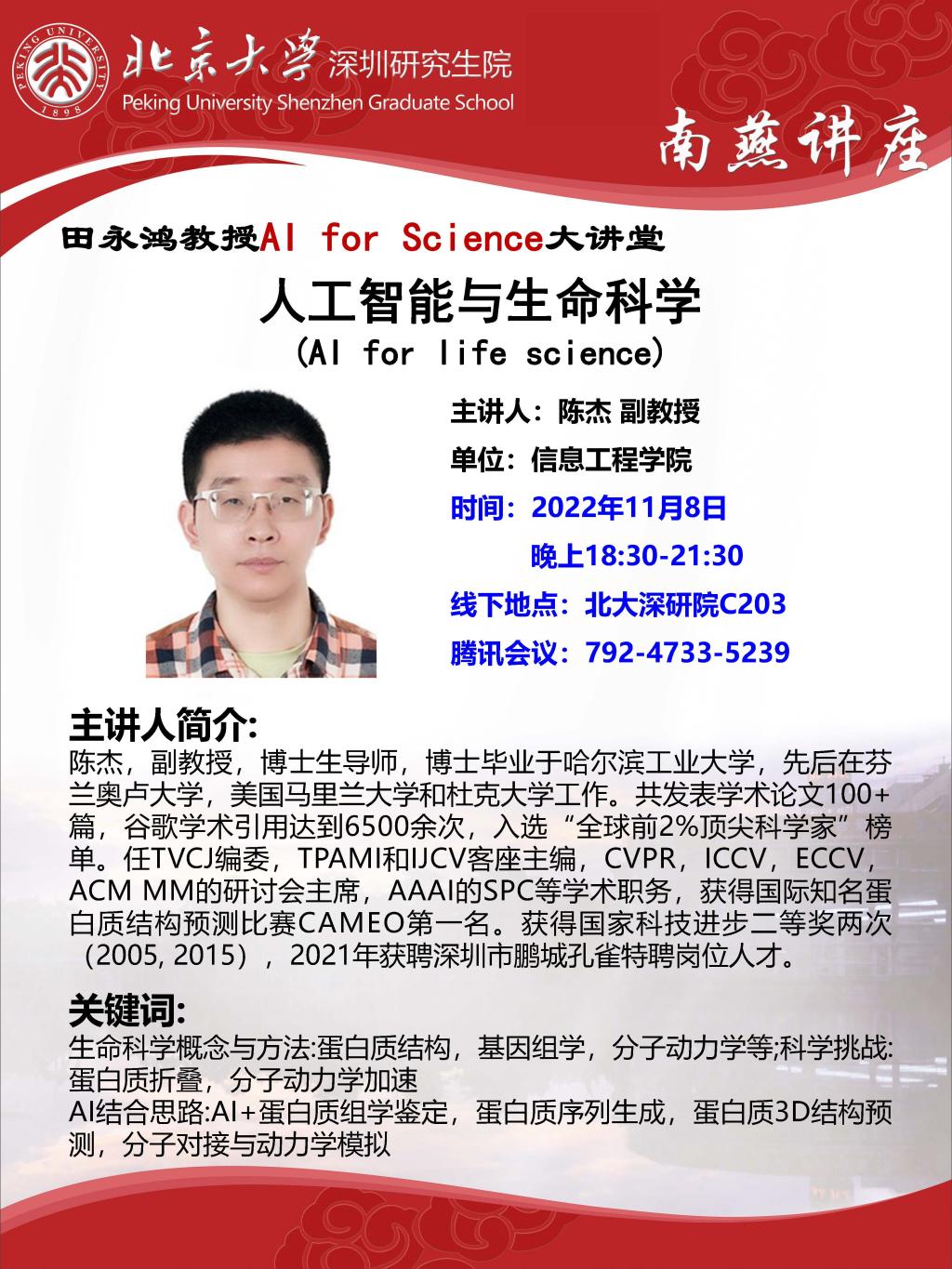 【学术讲座】 陈杰:人工智能与生命科学
