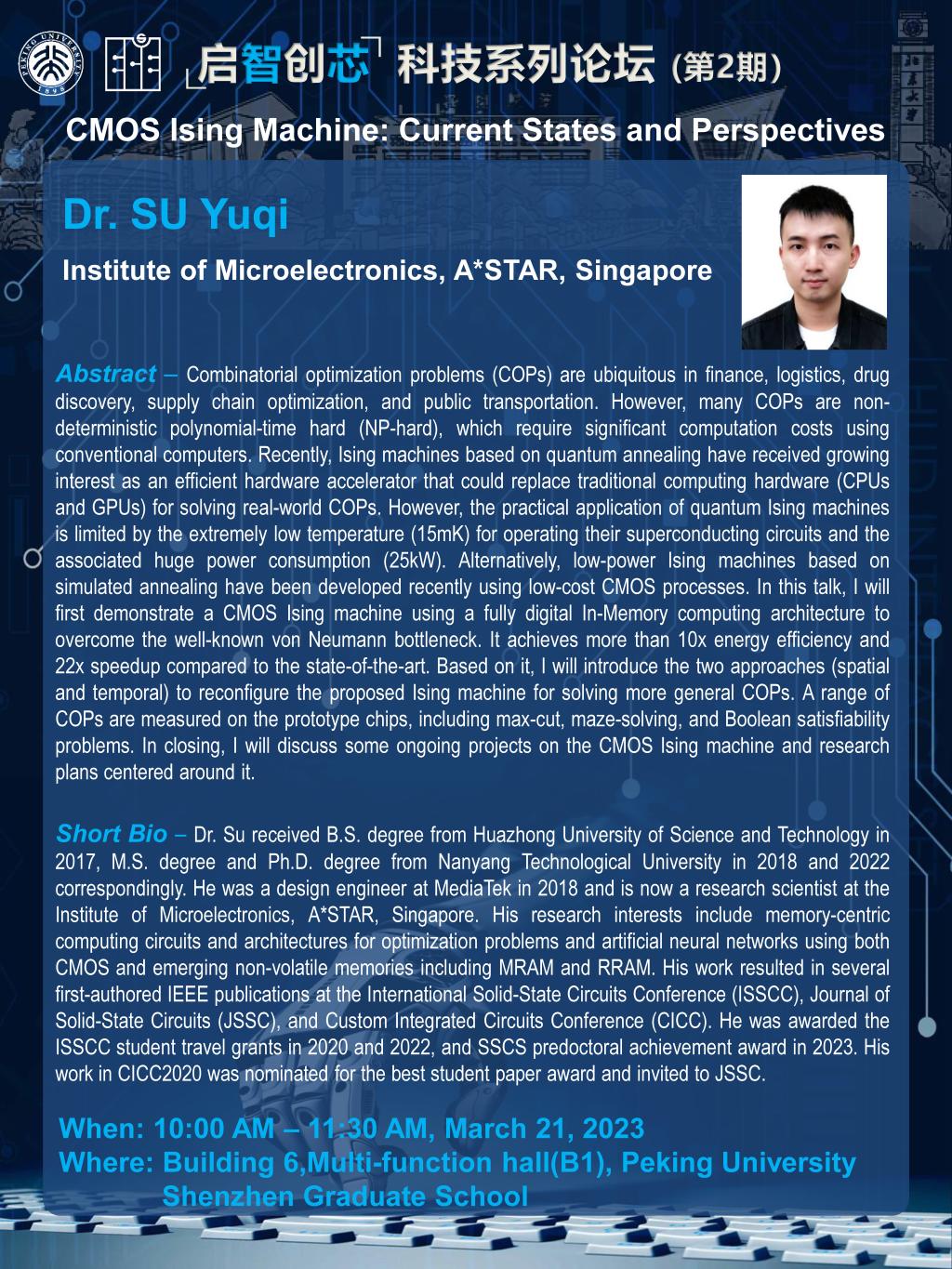 【启智创芯科技系列论坛】 (NO.2)Dr.SU Yuqi:CMOS Ising Machine: Current States and Perspectives