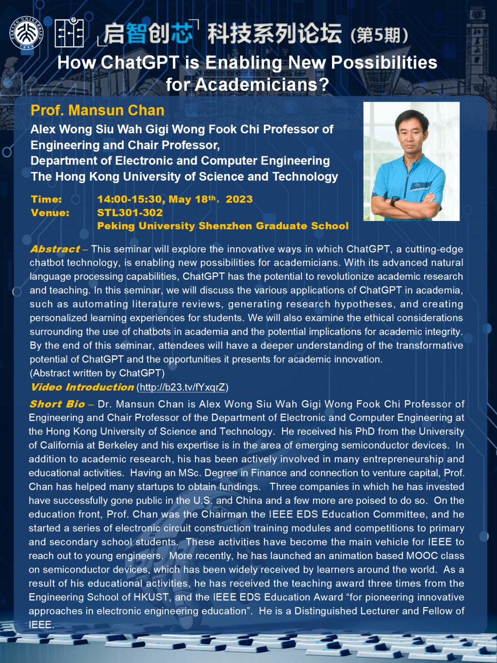 讲座题目:How ChatGPT is Enabling New Possibilities for Academicians?