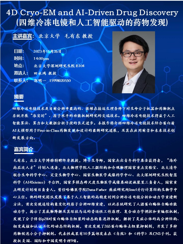讲座 | 预告 4D Cryo-EM and AI-Driven Drug Discovery(四维冷冻电镜和人工智能驱动的药物发现)