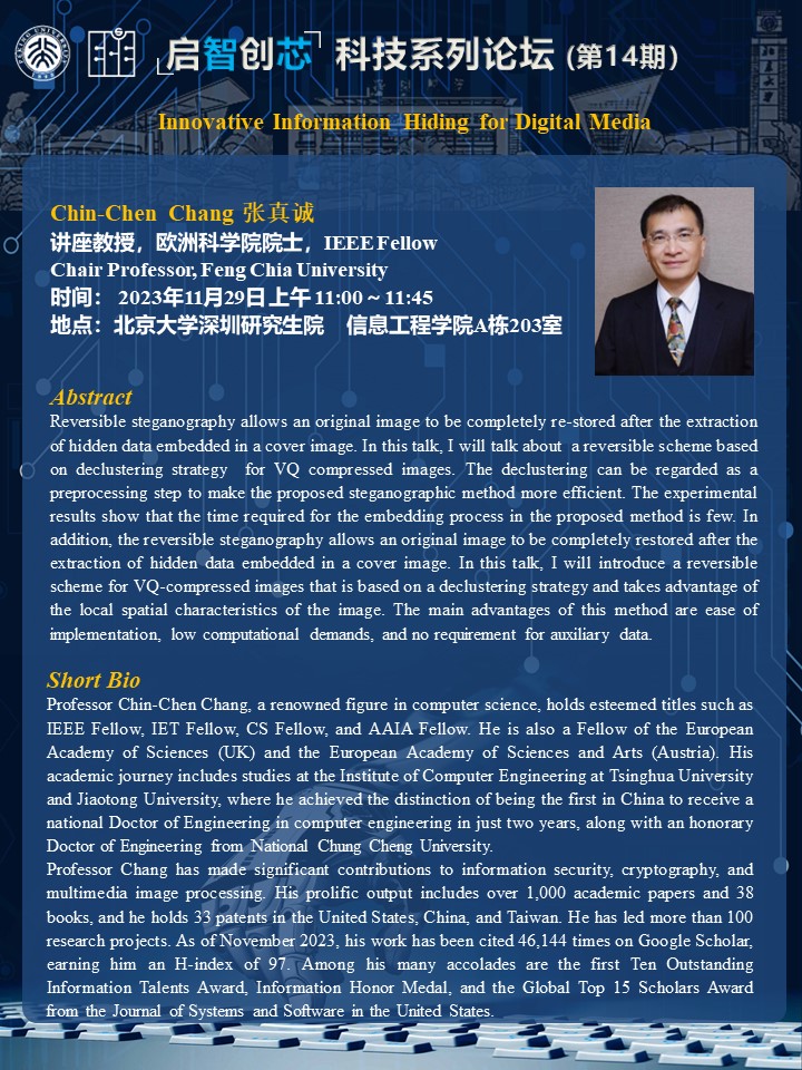 海角社区 “启智创芯”科技系列论坛系列讲座第十四期定于11月29日(周三)上午11:00-11:45举办,本次论坛在深圳研究生院海角社区 A栋203室举行,欢迎广大师生参加。