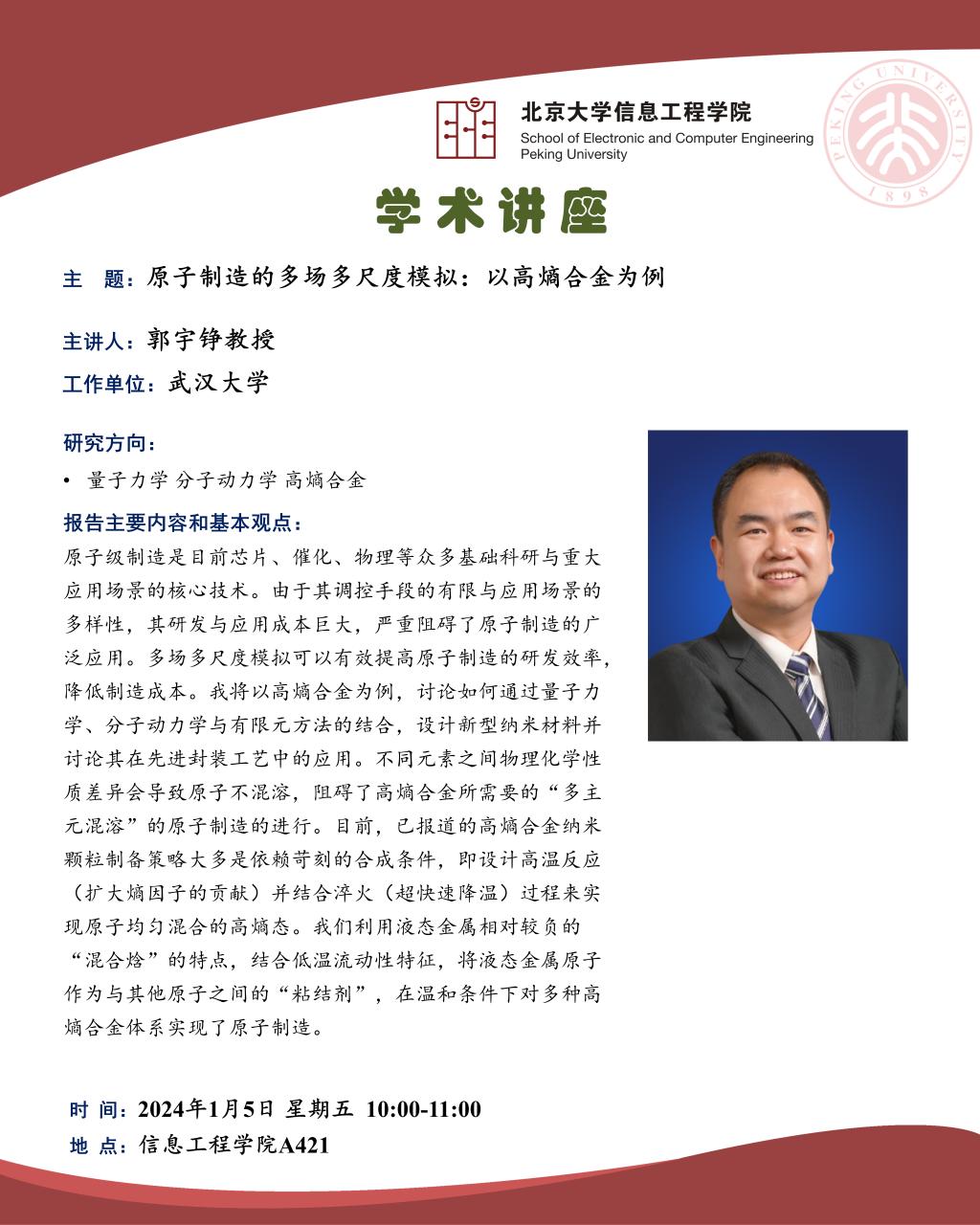 讲座定于2024年1月5日(周五)10:00开始,本次讲座在A421会议室举行,欢迎广大师生参加。