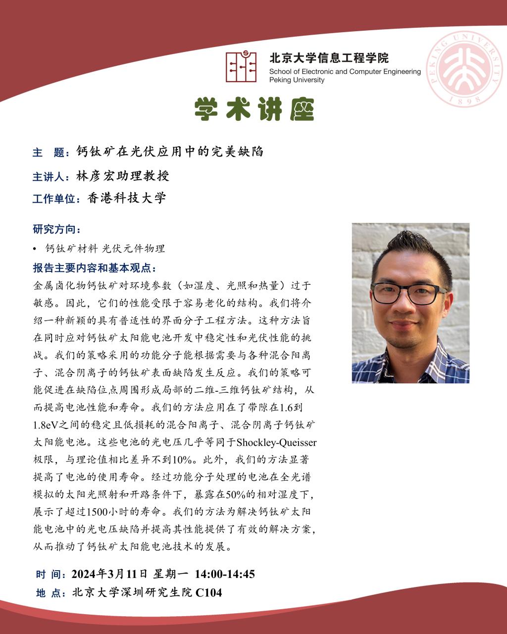 讲座 | 预告 钙钛矿在光伏应用中的完美缺陷