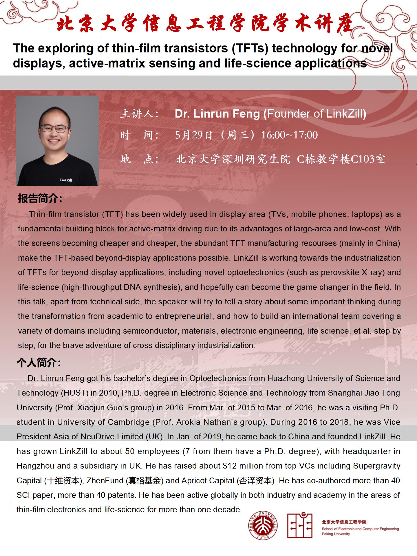 讲座 | 预告The exploring of thin-film transistors (TFTs) technology for novel displays, active-matrix sensing and life-science applications