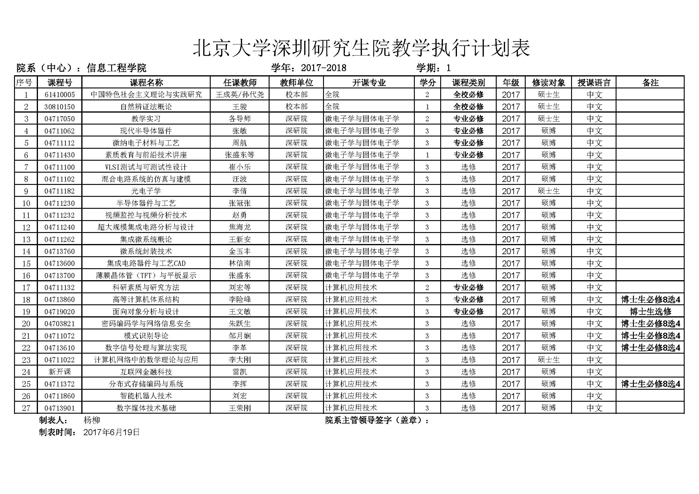 海角社区 深圳研究生院2017-2018学年第一学期执行计划