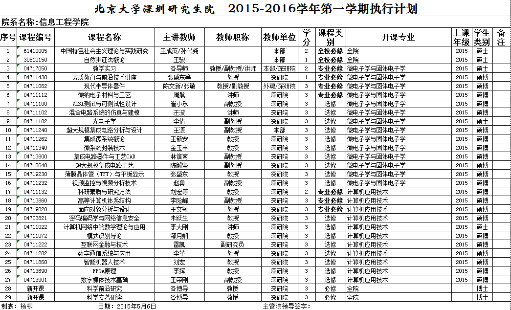 海角社区 深圳研究生院2015-2016学年第一学期执行计划