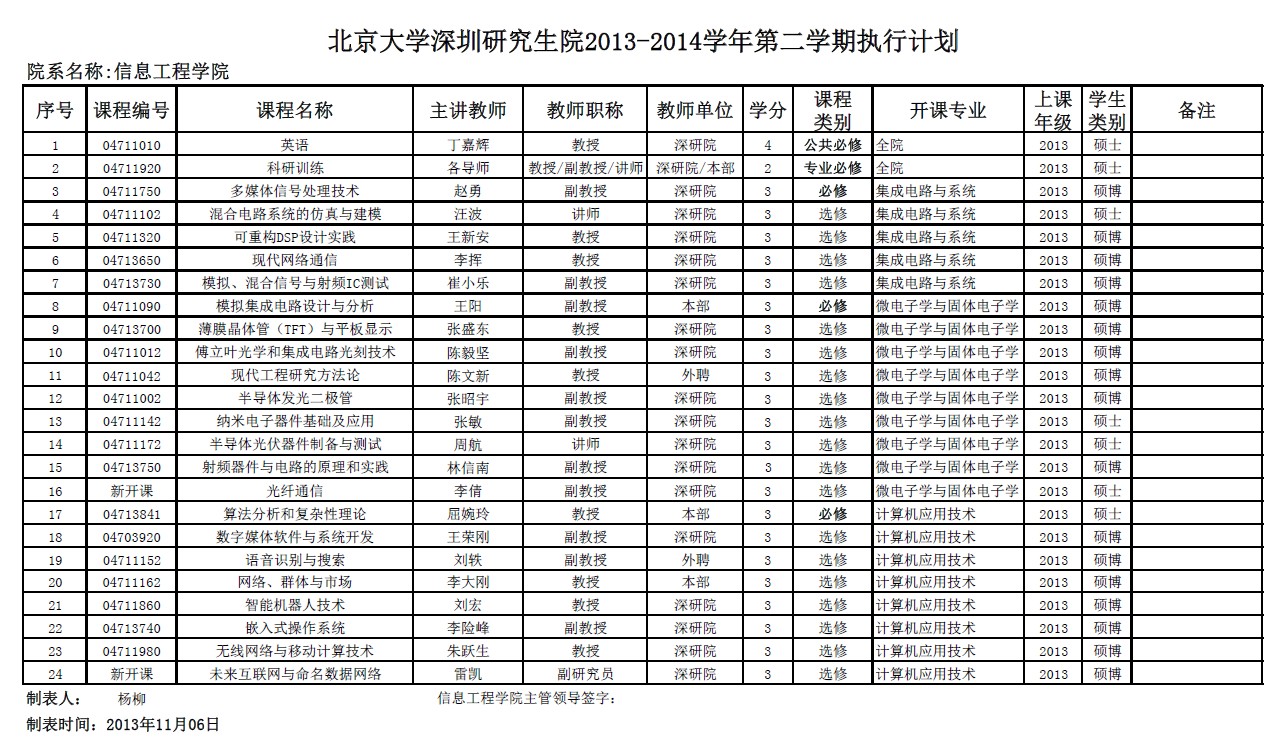 海角社区 深圳研究生院2013-2014学年第二学期执行计划