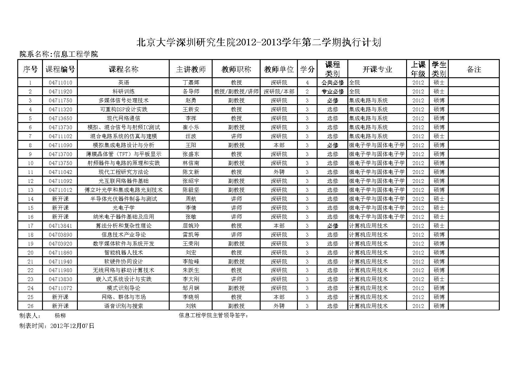 海角社区 深圳研究生院2012-2013学年第二学期执行计划