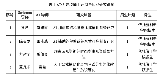 1、AI4S专项博士计划包括:AI4S推免博士生、AI4S硕转博、AI4S申请-考核制博士生;