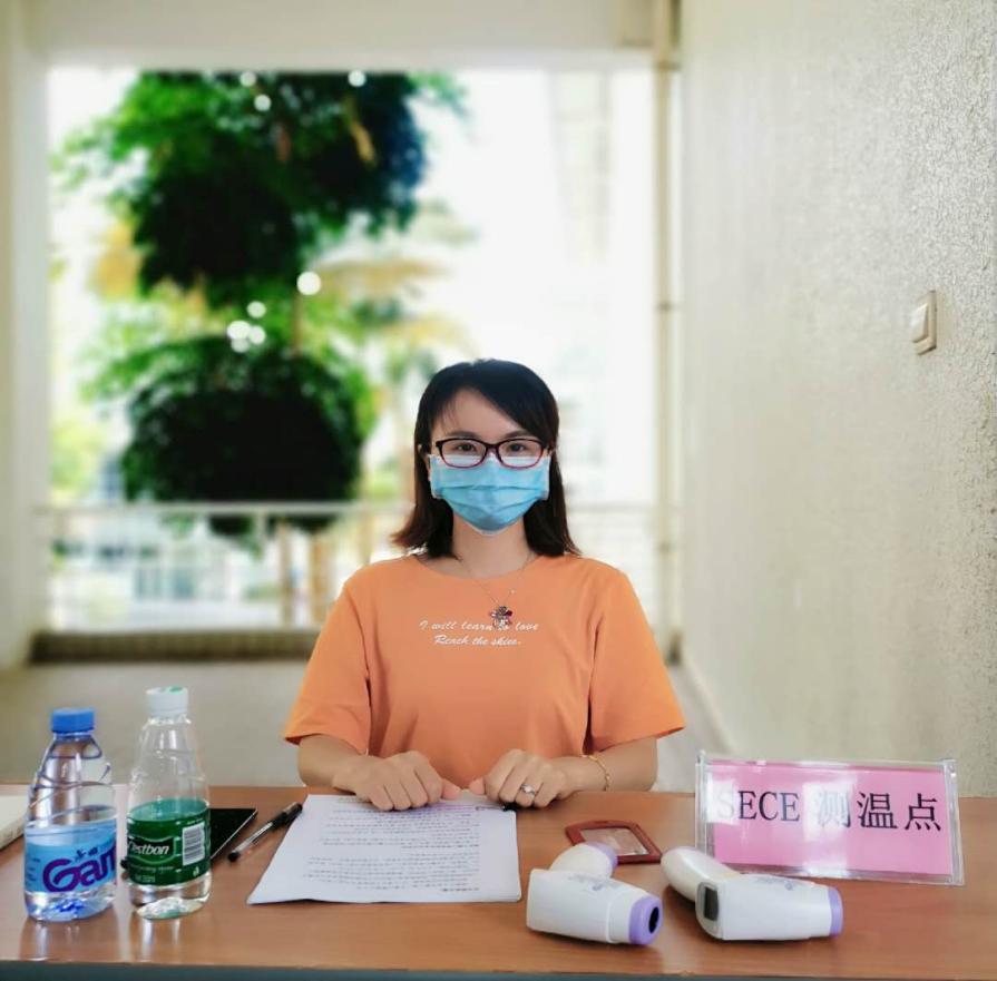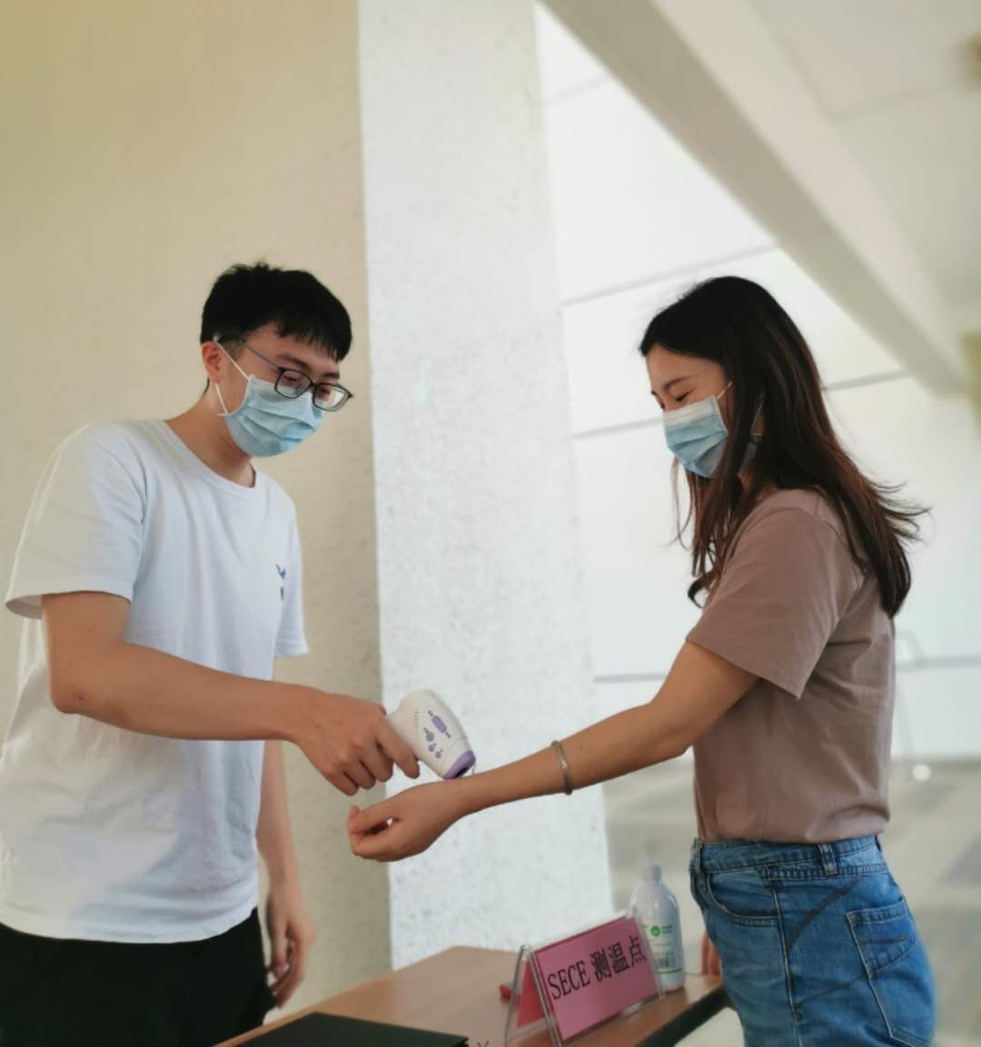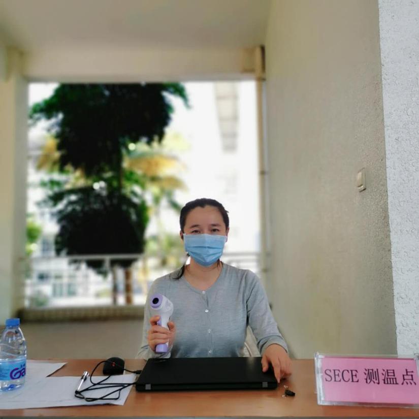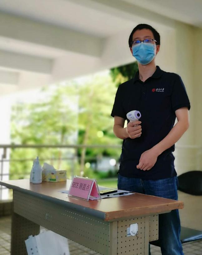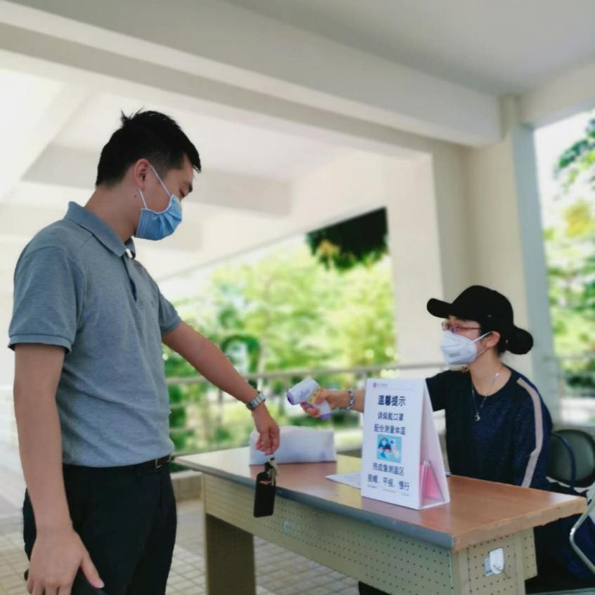 为落实广东省、深圳市关于春季返校的防疫工作安排,响应北大深研院总务处关于落实网格化管理,建立每日体温检测制度的号召。2020年4月27日上午,海角社区 深圳研究生院海角社区 教工党支部的党员教职工发挥先锋模范带头作用,于教职工复工第一周示范值勤,对海角社区 教学楼和实验室进出人员进行体温检测,以保障全院师生的健康安全。